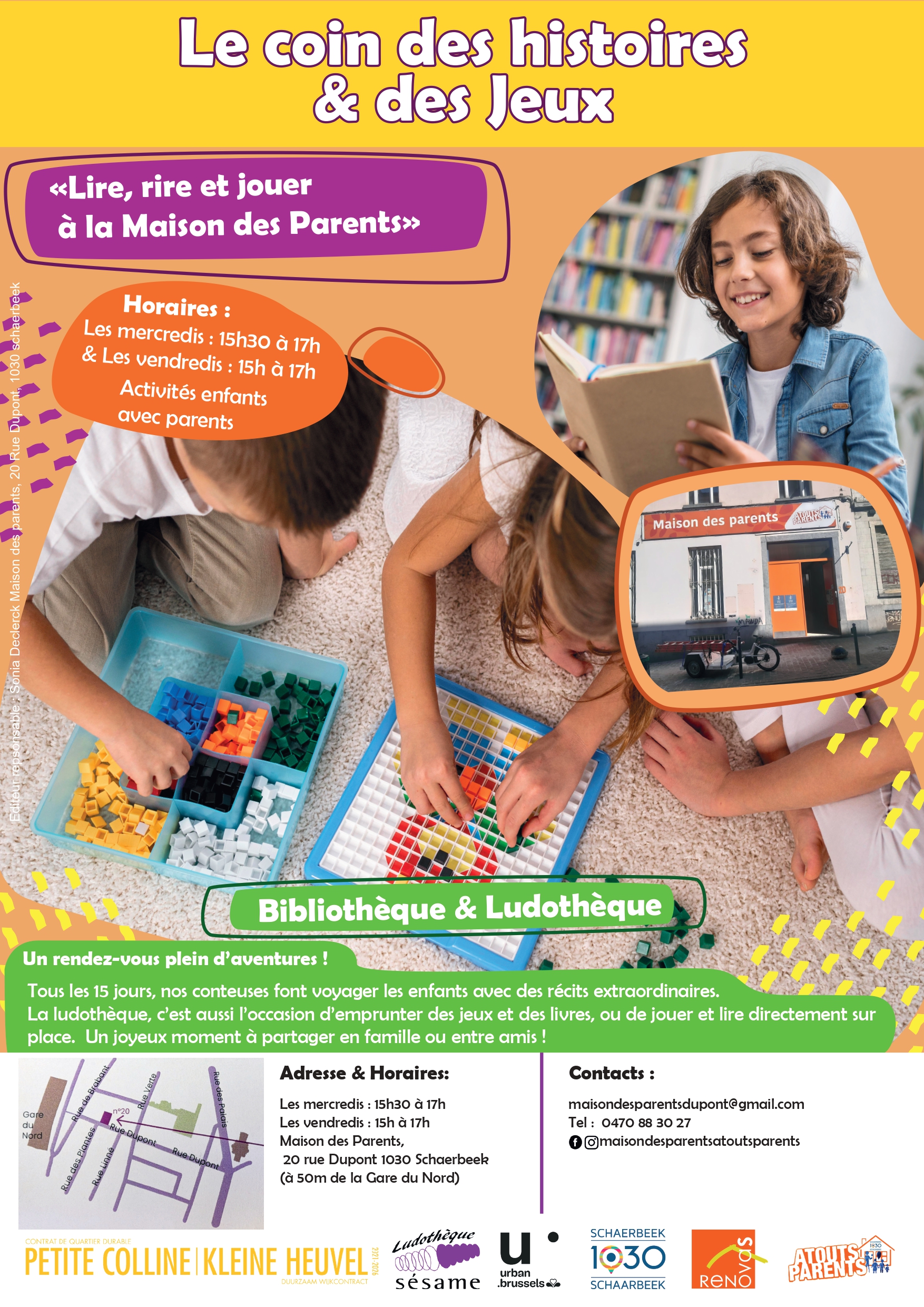 Maison des Parents rue Dupont 20, Schaerbeek, BelgiqueVenez découvrir 165 jeux pour tous les âges, de 0 à 99 ans, ainsi qu’une sélection de livres pour les enfants de 2,5 à 12 ans, et quelques ouvrages pour […]